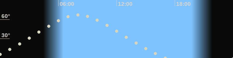 Höchster Stand (Kulmination)08:00 Uhr (h=67.3°)
