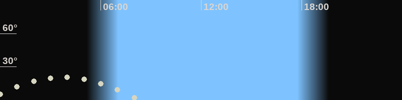 Monduntergang08:19 Uhr im Südwesten (αAz = 239.7°)
