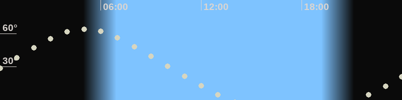 Höchster Stand (Kulmination)04:57 Uhr (h=63.9°)