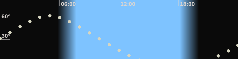 Höchster Stand (Kulmination)04:54 Uhr (h=66.2°)