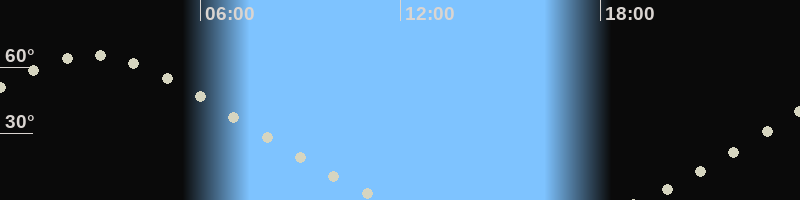 Höchster Stand (Kulmination)02:44 Uhr (h=65.5°)