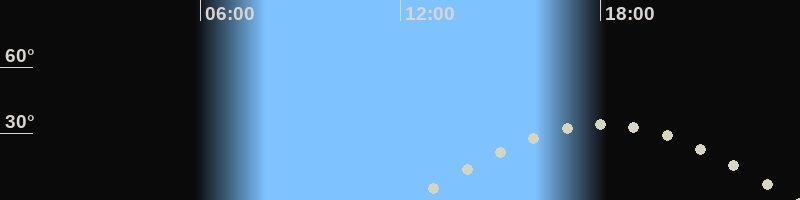 Höchster Stand (Kulmination)17:59 Uhr (h=33.7°)