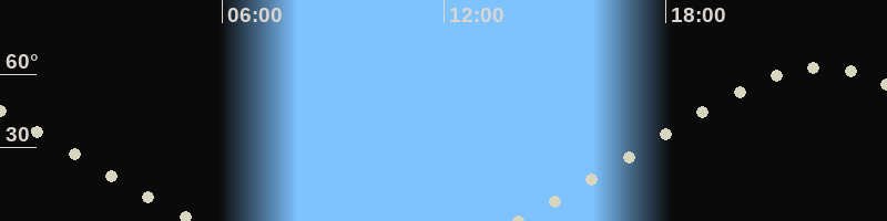 Höchster Stand (Kulmination)22:09 Uhr (h=62.3°)