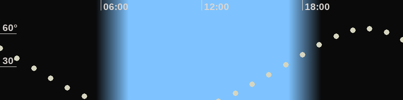 Höchster Stand (Kulmination)21:46 Uhr (h=64.4°)