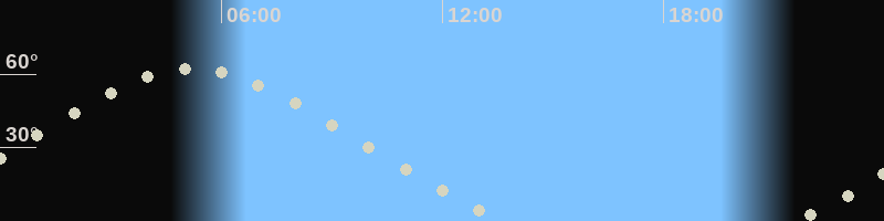 Höchster Stand (Kulmination)05:07 Uhr (h=61.8°)