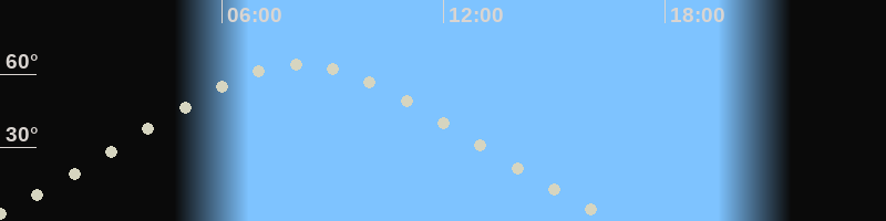 Höchster Stand (Kulmination)08:05 Uhr (h=64.2°)