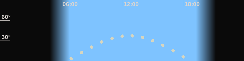 Höchster Stand (Kulmination)12:41 Uhr (h=38.3°)