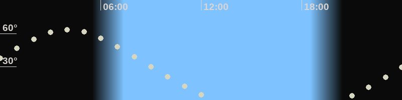 Höchster Stand (Kulmination)04:00 Uhr (h=63.5°)