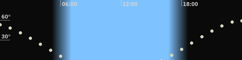 Höchster Stand (Kulmination)23:55 Uhr (h=58.9°)