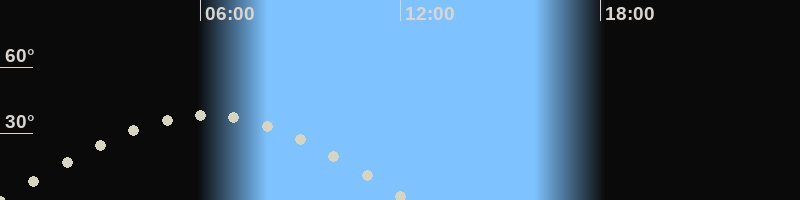 Höchster Stand (Kulmination)06:13 Uhr (h=38.4°)