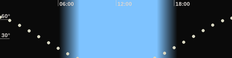 Höchster Stand (Kulmination)00:24 Uhr (h=62.4°)