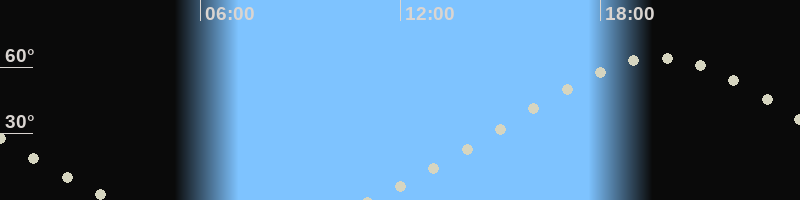 Höchster Stand (Kulmination)19:43 Uhr (h=64.3°)