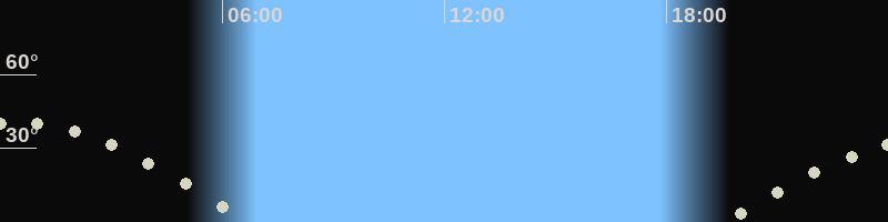 Höchster Stand (Kulmination)00:28 Uhr (h=40.6°)
