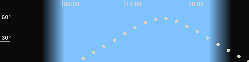Höchster Stand (Kulmination)15:33 Uhr (h=63.1°)