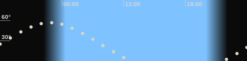 Höchster Stand (Kulmination)04:46 Uhr (h=56.7°)