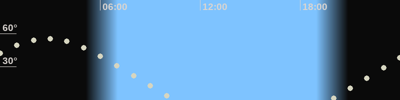 Höchster Stand (Kulmination)02:44 Uhr (h=55.3°)