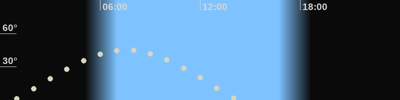 Höchster Stand (Kulmination)07:36 Uhr (h=45.5°)