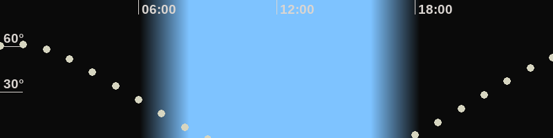Höchster Stand (Kulmination)00:44 Uhr, (h=61.5°)