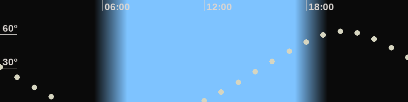 Höchster Stand (Kulmination)20:10 Uhr (h=62.8°)