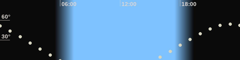 Höchster Stand (Kulmination)23:01 Uhr (h=54.1°)