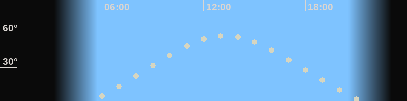 Höchster Stand (Kulmination)13:10 Uhr (h=58.2°)