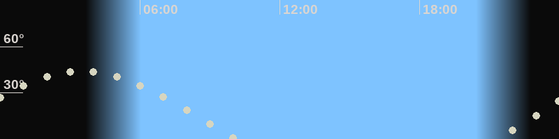 Höchster Stand (Kulmination)03:24 Uhr (h=43.5°)