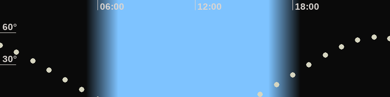 Höchster Stand (Kulmination)23:09 Uhr (h=55.7°)