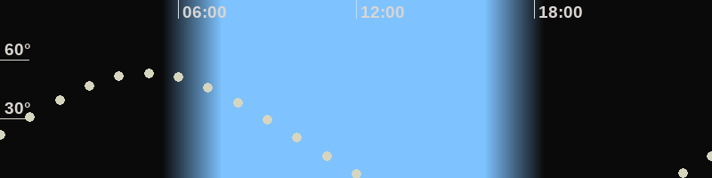Höchster Stand (Kulmination)04:56 Uhr (h=53.4°)