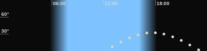 Monduntergang23:16 Uhr im Westen (αAz = 261.3°)
