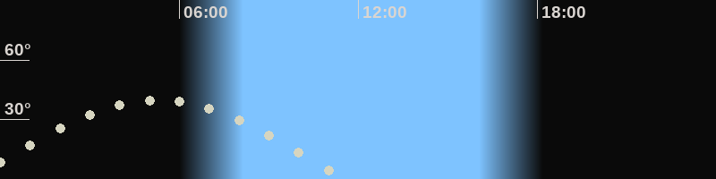 Monduntergang11:30 Uhr im Westen (αAz = 269.7°)