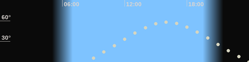 Höchster Stand (Kulmination)16:00 Uhr (h=57.9°)