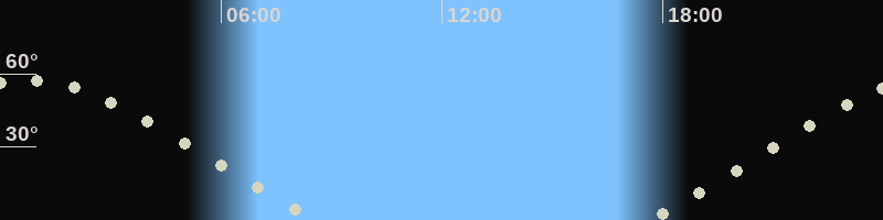 Höchster Stand (Kulmination)00:40 Uhr (h=57.3°)