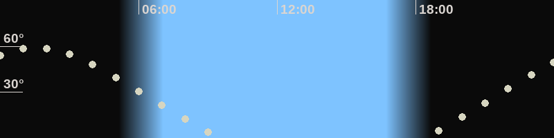 Höchster Stand (Kulmination)01:30 Uhr (h=58.9°)
