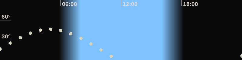 Höchster Stand (Kulmination)04:57 Uhr (h=46.6°)