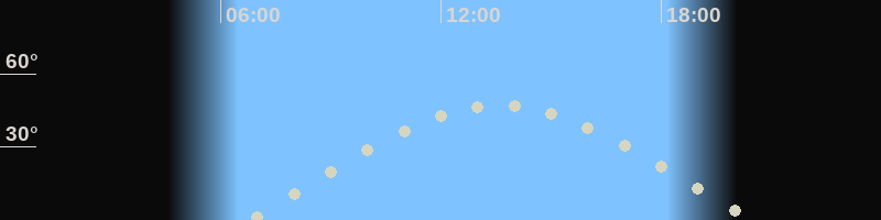 Höchster Stand (Kulmination)13:30 Uhr (h=46.7°)