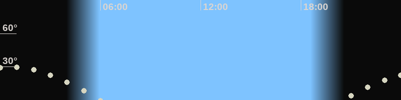 Höchster Stand (Kulmination)00:36 Uhr (h=29.8°)