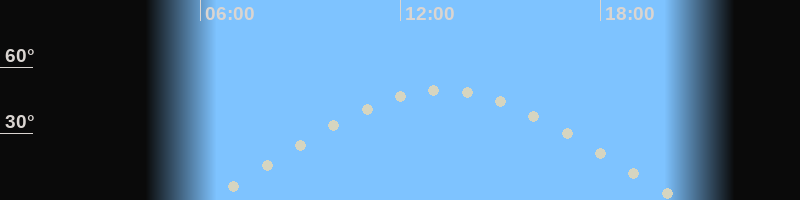 Höchster Stand (Kulmination)13:10 Uhr (h=49.1°)