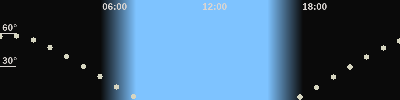 Höchster Stand (Kulmination)00:31 Uhr (h=57.9°)