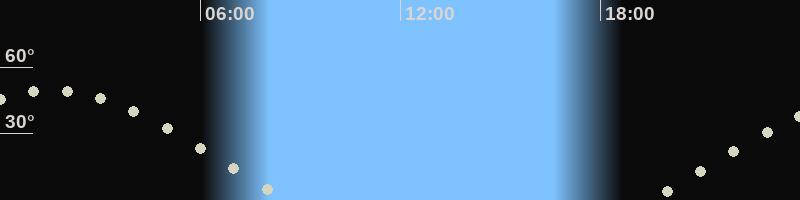 Höchster Stand (Kulmination)01:35 Uhr (h=49.6°)