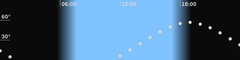 Höchster Stand (Kulmination)18:50 Uhr (h=56.5°)
