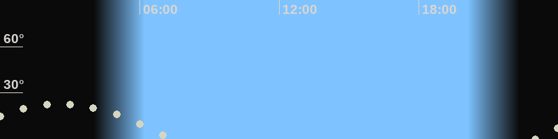 Monduntergang07:19 Uhr im Südwesten (αAz = 243.6°)