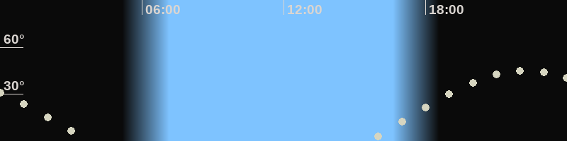 Höchster Stand (Kulmination)22:10 Uhr (h=45°)