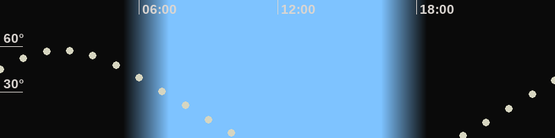 Höchster Stand (Kulmination)02:37 Uhr (h=57.4°)