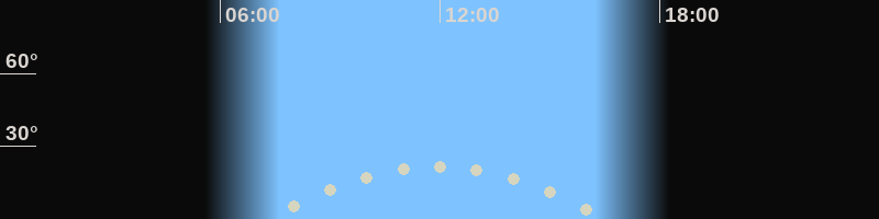 Höchster Stand (Kulmination)11:55 Uhr (h=21.7°)