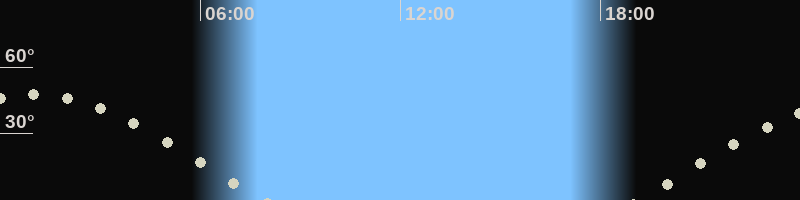 Höchster Stand (Kulmination)01:03 Uhr (h=47.8°)