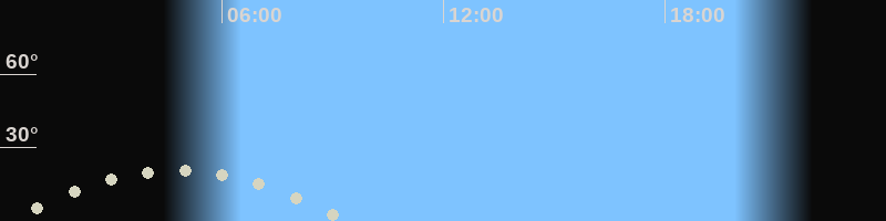 Monduntergang09:19 Uhr im Südwesten (αAz = 240.6°)