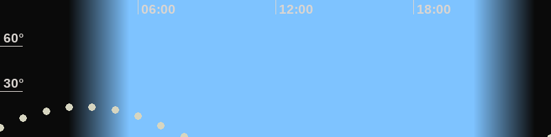 Monduntergang08:04 Uhr im Südwesten (αAz = 239.7°)