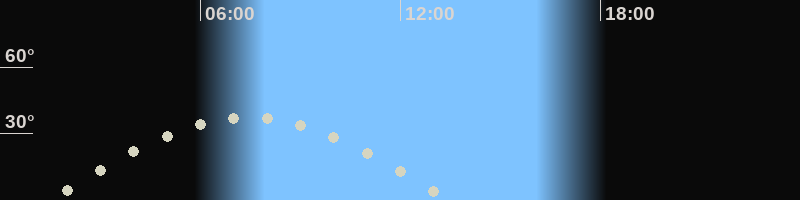 Höchster Stand (Kulmination)07:30 Uhr (h=37.5°)
