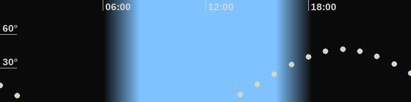 Höchster Stand (Kulmination)19:57 Uhr (h=46.5°)