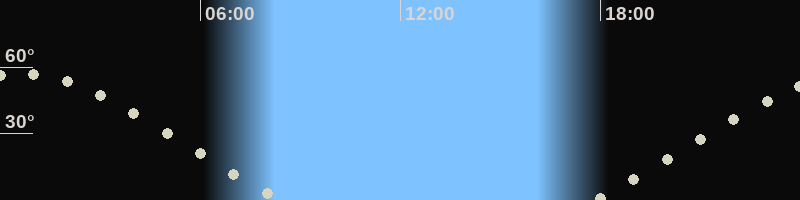 Höchster Stand (Kulmination)00:35 Uhr (h=56.9°)